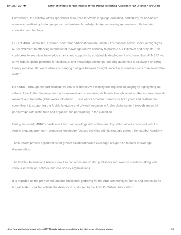 8/14/25, 10:01 AM MBRF showcases ‘Bil Arabi’ initiative at 10th Istanbul International Arabic Book Fair - Aletihad News Center