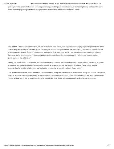 8/14/25, 10:01 AM MBRF showcases Bil Arabi initiative at 10th Istanbul International Arabic Book Fair - Middle East News 247