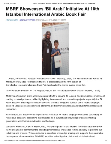 8/14/25, 10:03 AM MBRF Showcases ‘Bil Arabi’ Initiative At 10th Istanbul International Arabic Book Fair - UrduPoint