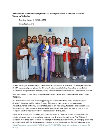 (MBRF) successfully completed the 'Children’s Literature Workshop,' launched by the Dubai