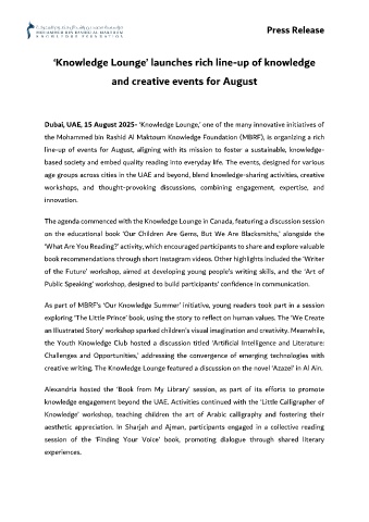 Dubai, UAE, 15 August 2025- ‘Knowledge Lounge,’ one of the many innovative initiatives of