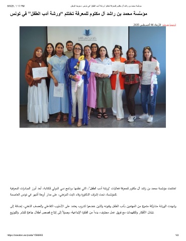 8/6/25, 1:17 PM نطوﻟا ةدﯾرﺟ › سﻧوﺗ ﻲﻓ ”لﻔطﻟا بدأ ﺔﺷرو“ مﺗﺗﺧﺗ ﺔﻓرﻌﻣﻠﻟ موﺗﻛﻣ لآ دﺷار نﺑ دﻣﺣﻣ ﺔﺳﱠﺳؤﻣ