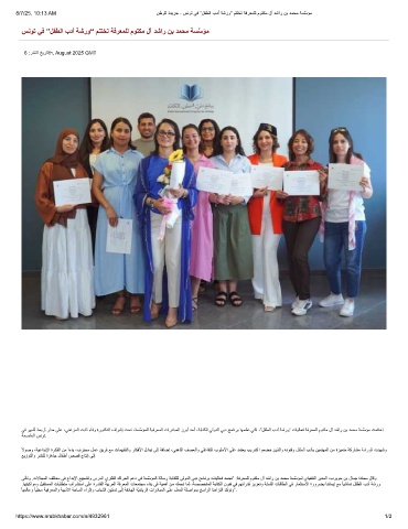 8/7/25, 10:13 AM نطوﻟا ةدﯾرﺟ - سﻧوﺗ ﻲﻓ ”لﻔطﻟا بدأ ﺔﺷرو“ مﺗﺗﺧﺗ ﺔﻓرﻌﻣﻠﻟ موﺗﻛﻣ لآ دﺷار نﺑ دﻣﺣﻣ ﺔﺳﱠﺳؤﻣ