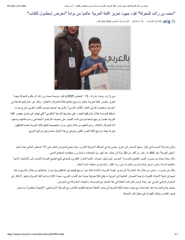 8/14/25, 9:15 AM تﻧﯾوﺑ ودرأ - بﺎﺗﻛﻠﻟ لوﺑﻧطﺳإ ضرﻌﻣ ﺔﺑاوﺑ نﻣ ﺎﯾﻣﻟﺎﻋ ﺔﯾﺑرﻌﻟا ﺔﻐﻠﻟا زﯾزﻌﺗ دوﮭﺟ دوﻘﺗ ﺔﻓرﻌﻣﻠﻟ دﺷار نﺑ دﻣﺣﻣ
