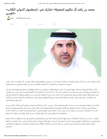 8/14/25, 9:14 AM «موﯾﻟا تارﺎﻣﻹا رﺎﺑﺧأ | «ﻲﺑرﻌﻟا بﺎﺗﻛﻠﻟ ﻲﻟودﻟا لوﺑﻧطﺳإ» ﻲﻓ كرﺎﺷﺗ «ﺔﻓرﻌﻣﻠﻟ موﺗﻛﻣ لآ دﺷار نﺑ دﻣﺣﻣ