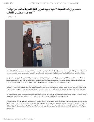 8/14/25, 9:12 AM "بﺎﺗﻛﻠﻟ لوﺑﻧطﺳإ ضرﻌﻣ" ﺔﺑاوﺑ نﻣ ﺎﯾﻣﻟﺎﻋ ﺔﯾﺑرﻌﻟا ﺔﻐﻠﻟا زﯾزﻌﺗ دوﮭﺟ دوﻘﺗ "ﺔﻓرﻌﻣﻠﻟ دﺷار نﺑ دﻣﺣﻣ" - Nas News UAE