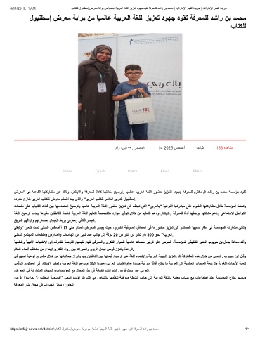 8/14/25, 9:11 AM بﺎﺗﻛﻠﻟ لوﺑﻧطﺳإ ضرﻌﻣ ﺔﺑاوﺑ نﻣ ﺎﯾﻣﻟﺎﻋ ﺔﯾﺑرﻌﻟا ﺔﻐﻠﻟا زﯾزﻌﺗ دوﮭﺟ دوﻘﺗ ﺔﻓرﻌﻣﻠﻟ دﺷار نﺑ دﻣﺣﻣ | ﮫﯾﺗارﺎﻣﻹا رﺟﻔﻟا ةدﯾرﺟ | ﮫﯾﺗارﺎﻣﻹا رﺟﻔﻟا ةدﯾرﺟ