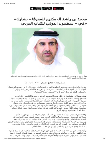مﻮﯿﻟا تارﺎﻣﻹا - لﻮﺒﻨﻄﺳإ رﺪﺼﻤﻟا: ﺦﻳرﺎﺘﻟا: 14 2025 ﺲﻄﺴﻏأ