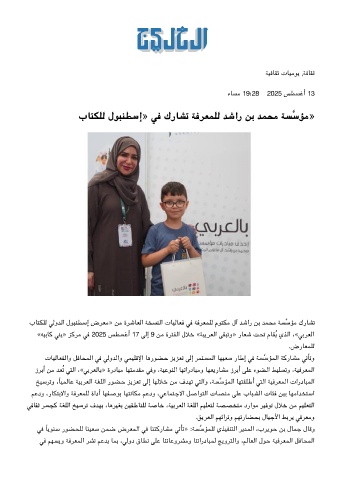 بﺎﺘﻠﻟ ﻟوﺪﻟا لﻮﺒﻨﻄﺳإ ضﺮﻌﻣ» ﻦﻣ ةﺮﺷﺎﻌﻟا ﺔﺨﺴﻨﻟا تﺎﻴﻟﺎﻌﻓ ﻓ ﺔﻓﺮﻌﻤﻠﻟ مﻮﺘﻣ لآ ﺪﺷار ﻦﺑ ﺪﻤﺤﻣ ﺔﺴﺳﺆﻣ كرﺎﺸﺗ