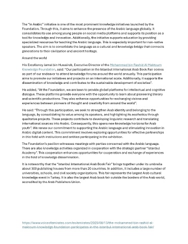 Foundation. Through this, it aims to enhance the presence of the Arabic language globally. It