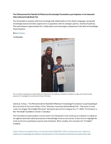 Istanbul, Turkey – The Mohammed bin Rashid Al Maktoum Knowledge Foundation is participating in