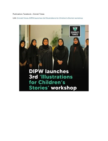 Publication: Facebook – Emirati Times Link: Emirati Times: DIPW launches 3rd ‘Illustrations for Children’s Stories’ workshop