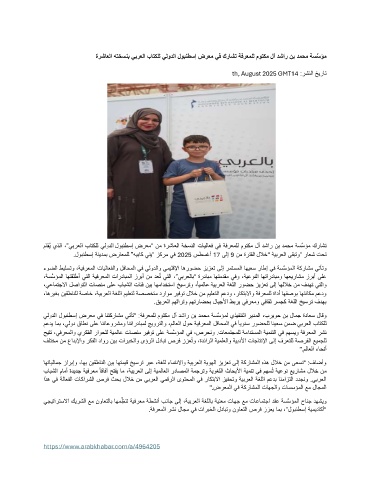 ةرشاعلا هتخسنب يبرعلا باتكلل يلودلا لوبنطسإ ضرعم يف كراشت ةفرعملل موتكم لآ دشار نب دمحم ةسَّسؤم