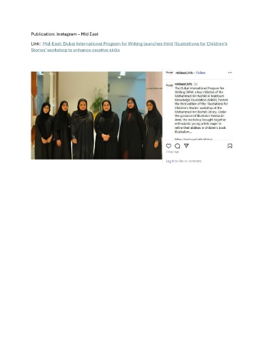 Publication: Instagram – Mid East Link: Mid-East: Dubai International Program for Writing launches third ‘Illustrations for Children’s Stories’ workshop to enhance creative skills