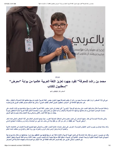 8/15/25, 9:41 AM "24 تارﺎﻣﻹا « "بﺎﺗﻛﻠﻟ لوﺑﻧطﺳإ ضرﻌﻣ" ﺔﺑاوﺑ نﻣ ﺎﯾﻣﻟﺎﻋ ﺔﯾﺑرﻌﻟا ﺔﻐﻠﻟا زﯾزﻌﺗ دوﮭﺟ دوﻘﺗ "ﺔﻓرﻌﻣﻠﻟ دﺷار نﺑ دﻣﺣﻣ