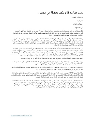 سطسغأ رهشل ةينغلا تايلاعفلا نم ةعومجم ،ةفرعملل موتكم لآ دشار نب دمحم ةسَّسؤم تاردابم ىدحإ ،»ةفرعم ةحارتسا« مِّظنت