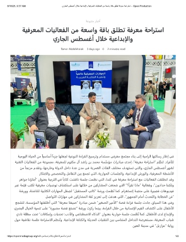 8/18/25, 9:37 AM يرﺎﺟﻟا سطﺳﻏأ لﻼﺧ ﺔﯾﻋادﺑﻹاو ﺔﯾﻓرﻌﻣﻟا تﺎﯾﻟﺎﻌﻔﻟا نﻣ ﺔﻌﺳاو ﺔﻗﺎﺑ ﻖﻠطﺗ ﺔﻓرﻌﻣ ﺔﺣارﺗﺳا – Open Production