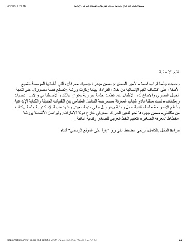 ﺔﯿﻤﻨﺗ ﻰﻠﻋ «ةرﻮﺼﻣ ﺔﺼﻗ ﻊﻨﺼﻧ» ﺔﺷرو تﺰﻛر ﺎﻤﻨﯿﺑ ،ةءاﺮﻘﻟا لﻼﺧ ﻦﻣ ﺔﯿﻧﺎﺴﻧﻹا ﻢﯿﻘﻟا فﺎﺸﺘﻛا ﻰﻠﻋ لﺎﻔطﻷا