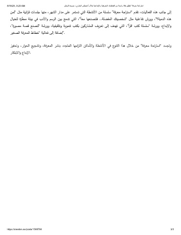 زيﻔحﺗو ،راوحﻟا ﻊيجشﺗو ،ﺔﻓرﻌمﻟا رشنﺑ ددجتمﻟا ﺎﻬﻣازتﻟا نﻛﺎﻣﻷاو ﺔطشﻧﻷا ﻲﻓ عونتﻟا اذﻫ لﻼﺧ نﻣ ”ﺔﻓرﻌﻣ ﺔﺣارتﺳا“ دسجﺗو