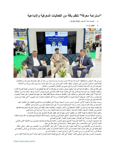 . تاراملإا ةلود جراخ يفرعملا كارحلا ليعفت وحن اهدوهج نمض "يتبتكم نم باتك" ةسلج ةيردنكسلإا ةنيدم دهشتو