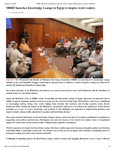 8/25/25, 9:47 AM MBRF launches Knowledge Lounge in Egypt to inspire Arab readers | culture | emirates7