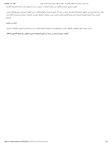بﺎﺒﺸﻟا قﺎﻓآ ﻊﻴﺳﻮﺗو ،ماﺪﺘﺴﻤﻟا ﻢﻴﻠﻌﺘﻟا ﻢﻋﺪﺑ ﺖﺑﺎﺜﻟا ﺎﻬﻣاﺰﺘﻟاو ،ﺔﻓﺮﻌﻤﻠﻟ مﻮﺘﻜﻣ لآ ﺪﺷار ﻦﺑ ﺪﻤﺤﻣ ﺔﺴﺳﺆﻤﻟ ﺔﻠﺻاﻮﺘﻤﻟا دﻮﻬﺠﻟا ﻦﻤﺿ ةردﺎﺒﻤﻟا هﺬﻫ ﻲﺗﺄﺗو