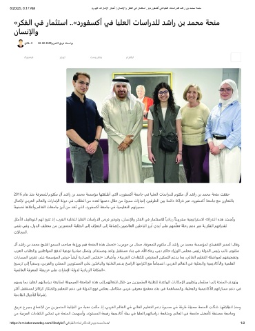 8/20/25, 8:17 AM «موﯾﻟا تارﺎﻣﻹا رﺎﺑﺧأ | نﺎﺳﻧﻹاو رﻛﻔﻟا ﻲﻓ رﺎﻣﺛﺗﺳا ..«دروﻔﺳﻛأ ﻲﻓ ﺎﯾﻠﻌﻟا تﺎﺳاردﻠﻟ دﺷار نﺑ دﻣﺣﻣ ﺔﺣﻧﻣ
