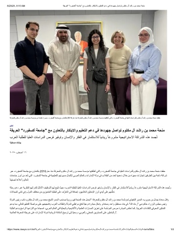 8/20/25, 8:16 AM ﺔﻘﯾرﻌﻟا "دروﻔﺳﻛأ ﺔﻌﻣﺎﺟ" ﻊﻣ نوﺎﻌﺗﻟﺎﺑ رﺎﻛﺗﺑﻻاو مﯾﻠﻌﺗﻟا مﻋد ﻲﻓ ﺎھدوﮭﺟ لﺻاوﺗ موﺗﻛﻣ لآ دﺷار نﺑ دﻣﺣﻣ ﺔﺣﻧﻣ
