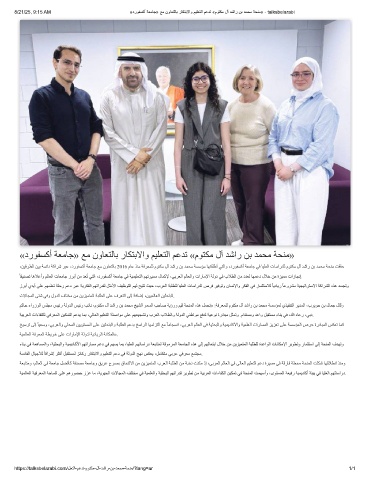 8/21/25, 9:15 AM «دروﻔﺳﻛأ ﺔﻌﻣﺎﺟ» ﻊﻣ نوﺎﻌﺗﻟﺎﺑ رﺎﻛﺗﺑﻻاو مﯾﻠﻌﺗﻟا مﻋدﺗ «موﺗﻛﻣ لآ دﺷار نﺑ دﻣﺣﻣ ﺔﺣﻧﻣ» - talksbelarabi