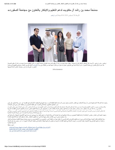 8/21/25, 9:15 AM «دروﻔﺳﻛأ ﺔﻌﻣﺎﺟ» ﻊﻣ نوﺎﻌﺗﻟﺎﺑ رﺎﻛﺗﺑﻻاو مﯾﻠﻌﺗﻟا مﻋدﺗ «موﺗﻛﻣ لآ دﺷار نﺑ دﻣﺣﻣ ﺔﺣﻧﻣ»