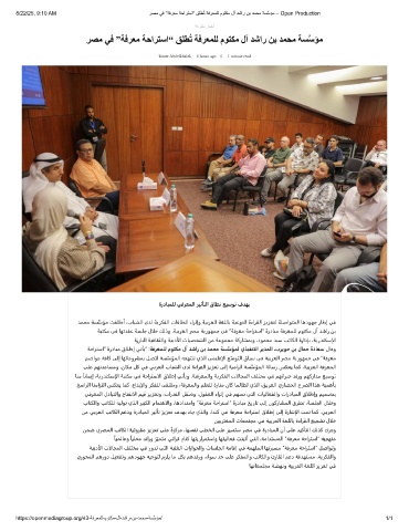 8/22/25, 9:10 AM رﺻﻣ ﻲﻓ ”ﺔﻓرﻌﻣ ﺔﺣارﺗﺳا“ ﻖﻠطُﺗ ﺔﻓرﻌﻣﻠﻟ موﺗﻛﻣ لآ دﺷار نﺑ دﻣﺣﻣ ﺔﺳﱠﺳؤﻣ – Open Production