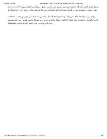 يرصﻤﻟا ﺐﺗﺎﻜﻟا ﺔﻴﺋوﺮﻘﻣ ﺰﻳﺰﻌﺗ ﻰﻠﻋ ًةﺰﻛﺮﻣ ،ﺎﻬﺴﻔﻧ ﻰﻄﺨﻟا ﻰﻠﻋ ﺮﻴﺴﺘﺳ رصﻣ ﻲﻓ ةردﺎﺒﻤﻟا نأ ﻰﻠﻋ ﺪﻴﻛﺄﺘﻟا ﻚﻟﺬﻛ ىﺮﺟو