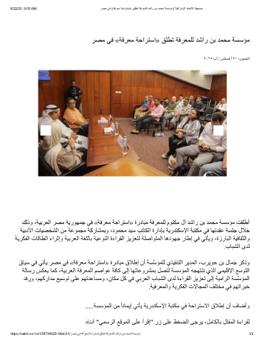 8/22/25, 9:09 AM رﺻﻣ ﻲﻓ «ﺔﻓرﻌﻣ ﺔﺣارﺗﺳا» ﻖﻠطﺗ ﺔﻓرﻌﻣﻠﻟ دﺷار نﺑ دﻣﺣﻣ ﺔﺳﺳؤﻣ | ﺔﯾﺗارﺎﻣﻹا دﺎﺣﺗﻻا ﺔﻔﯾﺣﺻ
