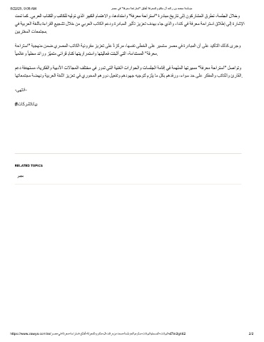 ﺔﺣارﺗﺳا" ﺔﯾﺟﮭﻧﻣ نﻣﺿ يرﺻﻣﻟا بﺗﺎﻛﻟا ﺔﯾﺋورﻘﻣ زﯾزﻌﺗ ﻰﻠﻋ ًةزﻛرﻣ ،ﺎﮭﺳﻔﻧ ﻰطﺧﻟا ﻰﻠﻋ رﯾﺳﺗﺳ رﺻﻣ ﻲﻓ ةردﺎﺑﻣﻟا نأ ﻰﻠﻋ دﯾﻛﺄﺗﻟا كﻟذﻛ ىرﺟو
