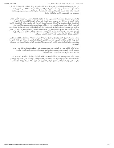 ﺮﺼﻣ ﺔﻳرﻮﮫﻤﺟ ﻲﻓ «ﺔﻓﺮﻌﻣ ﺔﺣاﺮﺘﺳا» ةردﺎﺒﻣ ﺔﻓﺮﻌﻤﻠﻟ مﻮﺘﻜﻣ لآ ﺪﺷار ﻦﺑ ﺪﻤﺤﻣ ﺔﺴ ﱠ ﺳﺆﻣ ﺖﻘﻠطأ