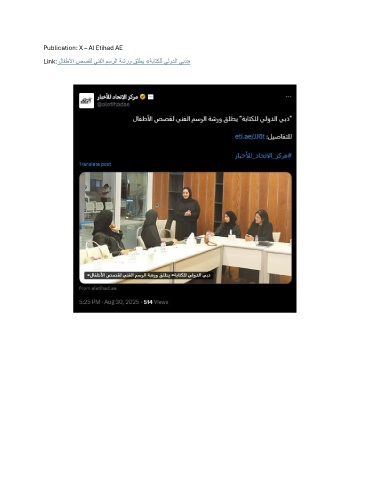 Publication: X – Al Etihad AE Link: لافطلأا صصقل ينفلا مسرلا ةشرو قلطي »ةباتكلل يلودلا يبد«