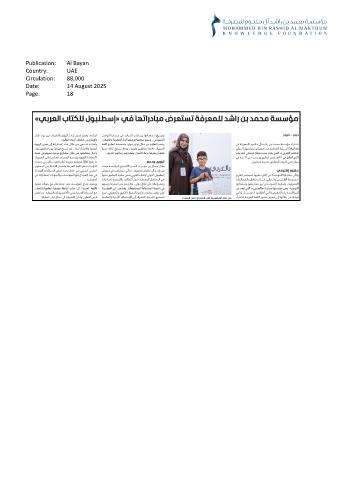 Publication: Al Bayan Country: UAE Circulation: 88,000 Date: 14 August 2025 Page: 18