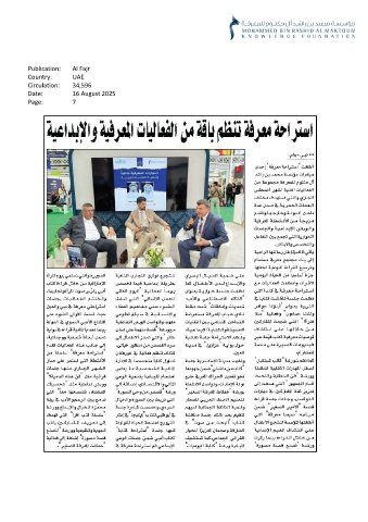 Publication: Al Fajr Country: UAE Circulation: 34,596 Date: 16 August 2025 Page: 7