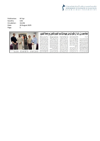Publication: Al Fajr Country: UAE Circulation: 34,596 Date: 20 August 2025 Page: 5