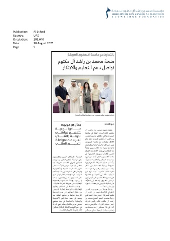 Publication: Al Etihad Country: UAE Circulation: 109,640 Date: 20 August 2025 Page: 9