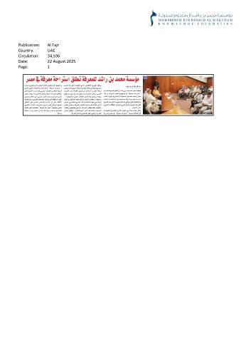 Publication: Al Fajr Country: UAE Circulation: 34,596 Date: 22 August 2025 Page: 1