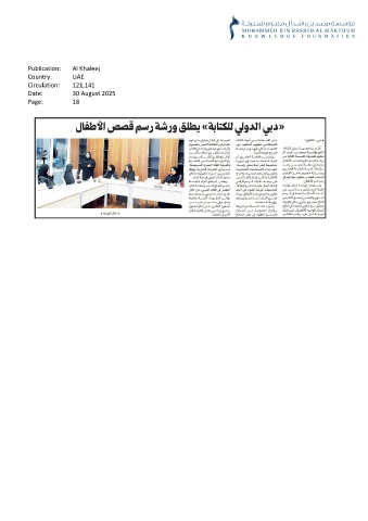 Publication: Al Khaleej Country: UAE Circulation: 121,141 Date: 30 August 2025 Page: 18