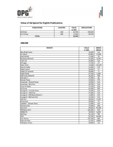 Value of Ad Spend for English Publications