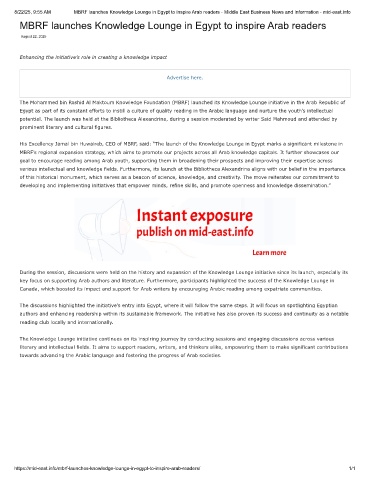 8/22/25, 9:55 AM MBRF launches Knowledge Lounge in Egypt to inspire Arab readers - Middle East Business News and Information - mid-east.info