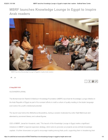 8/22/25, 9:56 AM MBRF launches Knowledge Lounge in Egypt to inspire Arab readers - Aletihad News Center