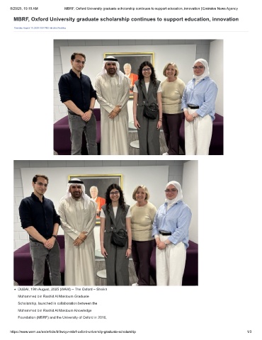8/20/25, 10:10 AM MBRF, Oxford University graduate scholarship continues to support education, innovation | Emirates News Agency