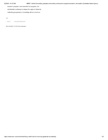 8/20/25, 10:10 AM MBRF, Oxford University graduate scholarship continues to support education, innovation | Emirates News Agency