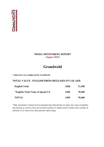 TOTAL VALUE - ENGLISH PRESS RELEASES IN UAE AED.