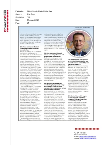 Publication: Global Supply Chain Middle East Country: Pan Arab Circulation: N/A Date: 26 August 2025 Page: 47 Tel: 971 4 4546093 Fax: 971 4 3612432 E-mail: info@communigateme.com Website: www.communigateme.com