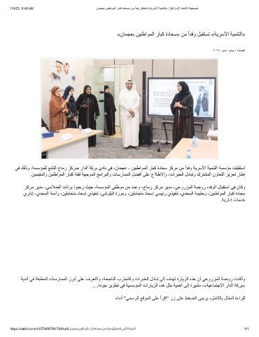 ﻲﻓ ﻚﻟذو ،ﺔﺴﺳﺆﻤﻠﻟ ﻊﺑﺎﺘﻟا حﺎﻣر ﺰﻛﺮﻤﺑ راﺪﻟا ﺔﻛﺮﺑ يدﺎﻧ ﻲﻓ ،نﺎﻤﺠﻋ - ﻦﯿﻨطاﻮﻤﻟا رﺎﺒﻛ ةدﺎﻌﺳ ﺰﻛﺮﻣ ﻦﻣ ًاﺪﻓو ﺔﯾﺮﺳﻷا ﺔﯿﻤﻨﺘﻟا ﺔﺴﺳﺆﻣ ﺖﻠﺒﻘﺘﺳا